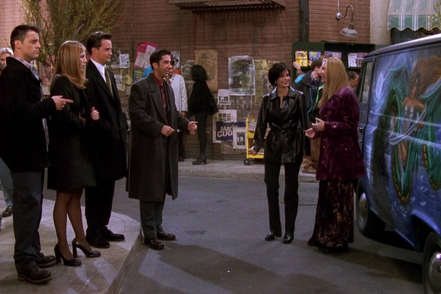 Jennifer Aniston (Rachel), Courteney Cox (Monica), David Schwimmer (Ross), Matt LeBlanc (Joey, Joey), Matthew Perry (Chandler), Lisa Kudrow (Phoebe)