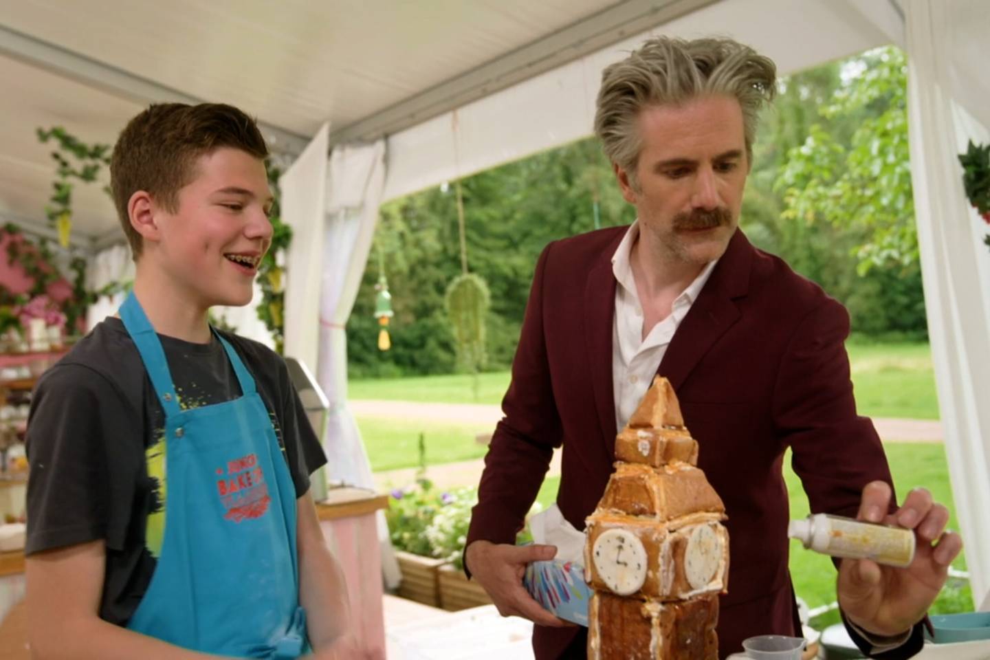 Het thema van de week is 'Reis rond de wereld'. Onze acht globetrotters starten in Engeland met een oer-Brits gebakje: de scone. Als spektakelstuk bouwen de Juniors hun favoriete vakantiebestemming in koek.