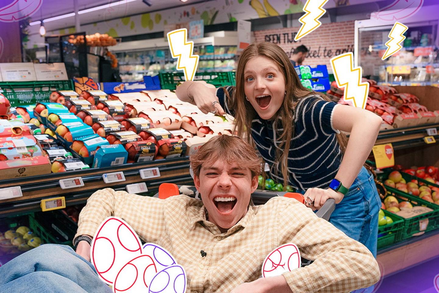 Nona en TikTok-sensatie Kassaticket worden gedropt in een supermarkt. Wie kan z'n stresslevel onder controle houden tijdens een kassarace en een undercover broodjeschallenge?